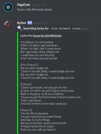 - !lyrics — Получает текст текущей воспроизводимой песни